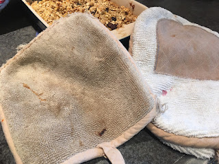 - Spread on a large greased cookie sheet, one that has edges. My pan size is approx 13 inches x 17 inches.