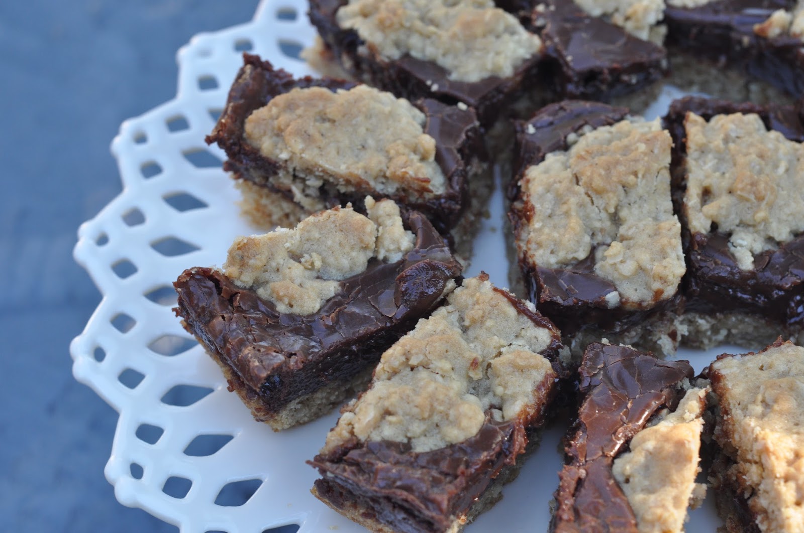 - Top with whipped cream and drizzle with chocolate sauce. Drizzle chocolate sauce in lines up and down the length of the pan then the opposite way to give you that wavy look. Refrigerate till serving time.
